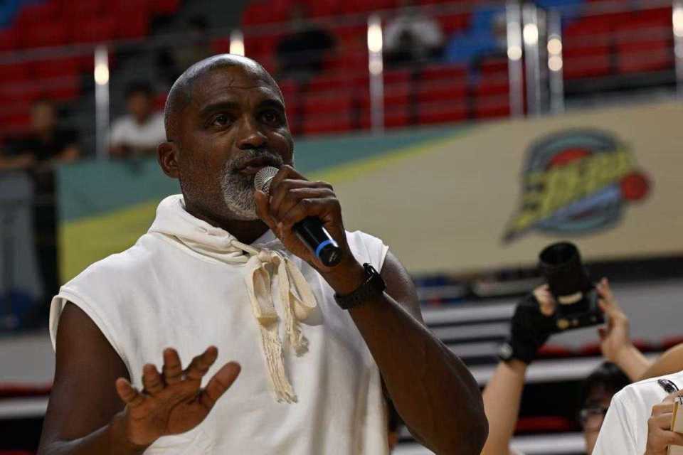 值得一提的是,此次比赛有一名神秘嘉宾出场.他就是有着“老猫”绰号的前NBA球星,曾与姚明一起效力于休斯顿火箭队的主力后卫卡蒂诺-莫布里。